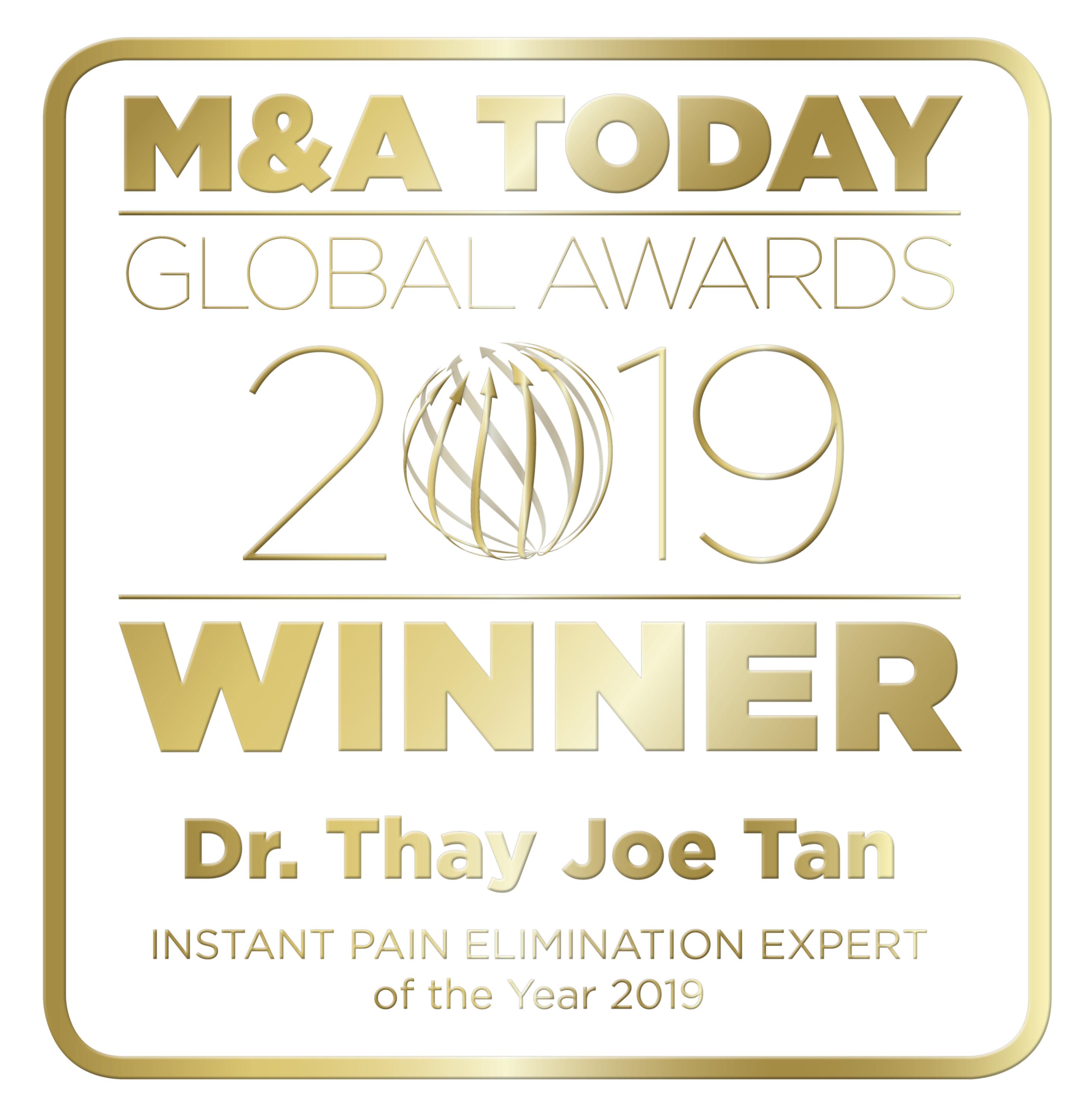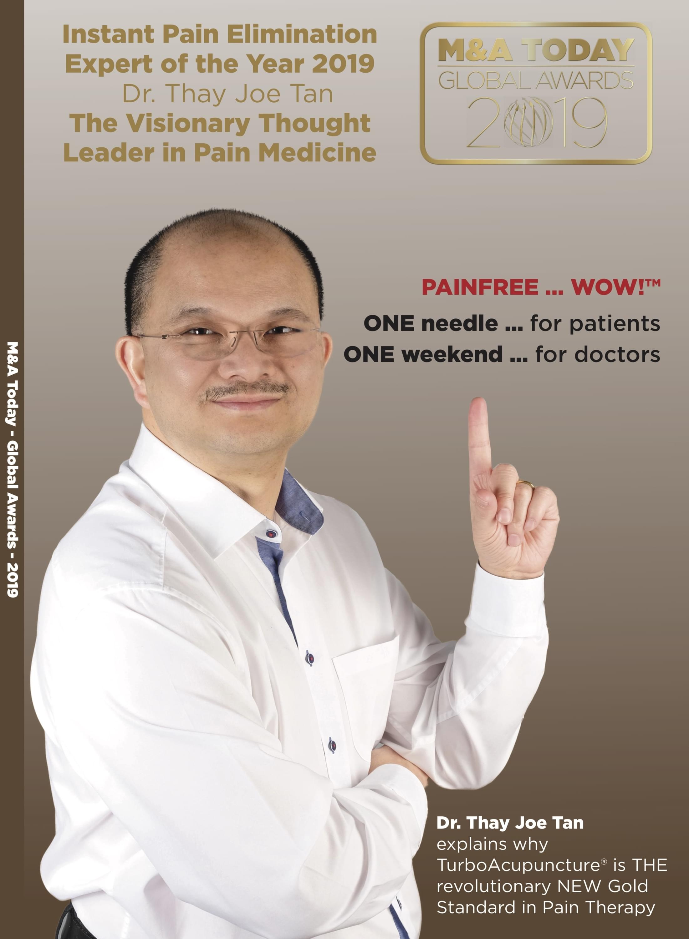 Experte für sofortige Schmerzelimination 2019, Akupunktur-Spezialist des Jahres 2019 und Akupunkteur des Jahres 2019, die Dr. Thay Joe Tan als DIE führende Autorität für die sofortige Schmerzausschaltung an die Spitze bringen und ihn zum wichtigsten Meinungsführer in der Schmerztherapie prädestinieren.