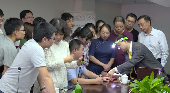 Dr. Tan demonstriert TurboAkupunktur™ vor Professoren und Ärzten am Dongzhimen Hospital, Internationale Abteilung, der Pekinger Universität für Chinesische Medizin (BUCM).