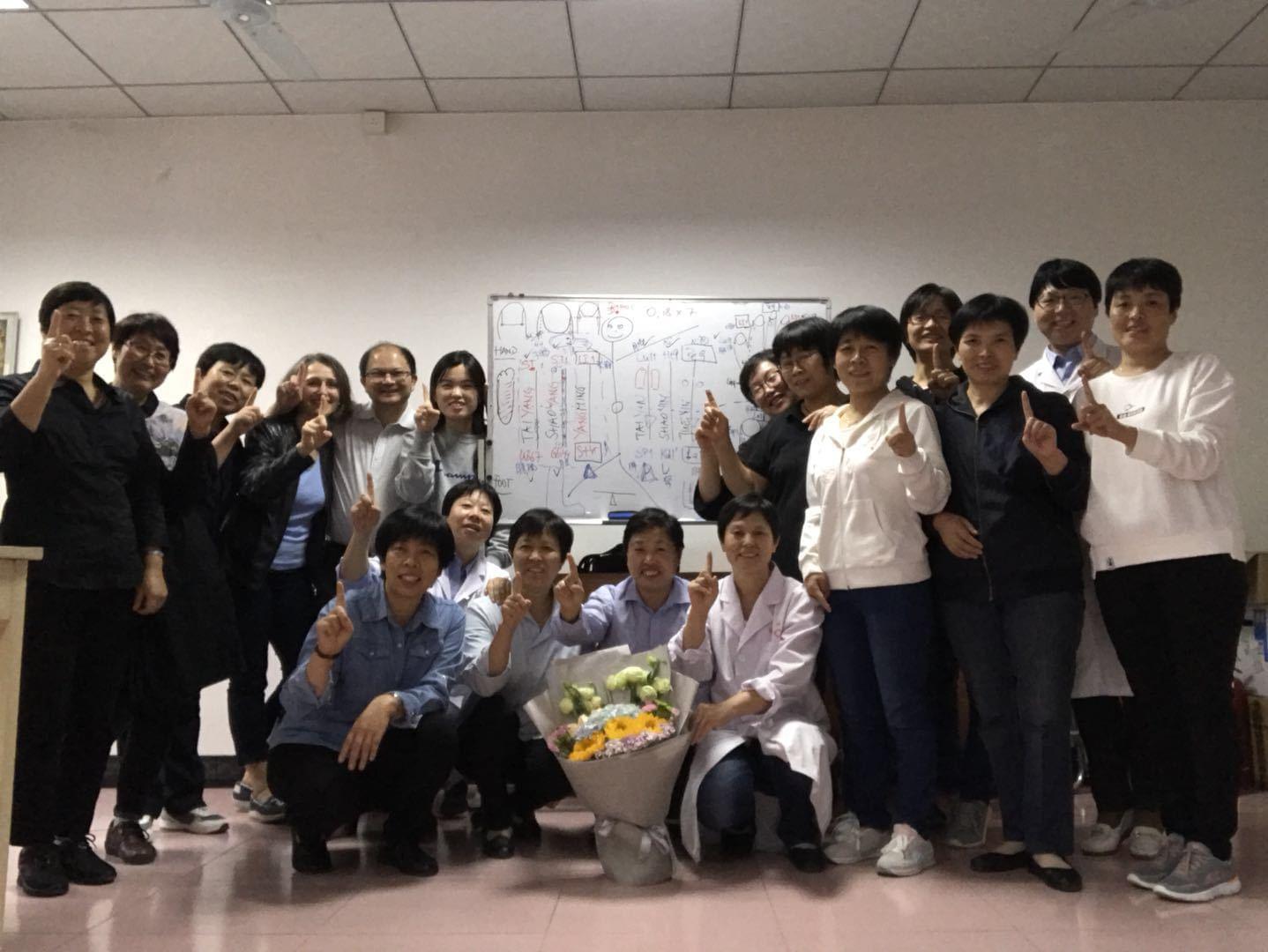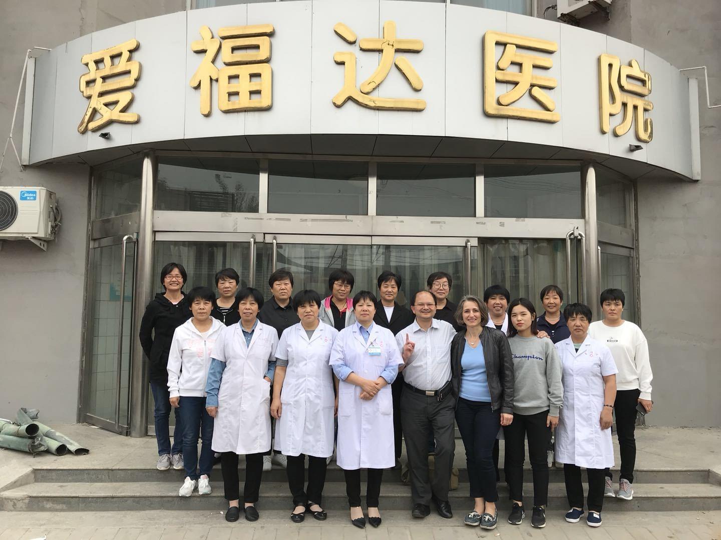 Dr. Tan unterrichtet medizinisches Personal eines katholischen Krankenhauses in Renqiu, Provinz Hebei, China.